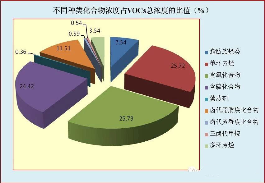 對不同種類VOCs的濃度分析發(fā)現,單環(huán)芳烴(25.72%)、含氧化...